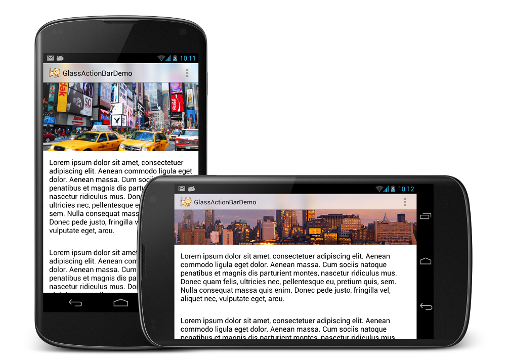 GlassActionBar is an Android library which implements a glass-like effect for the action bar.