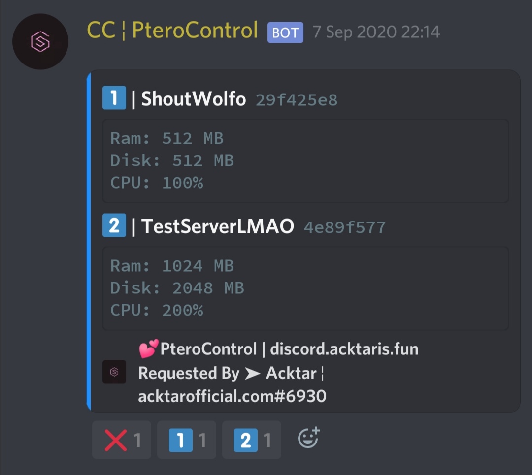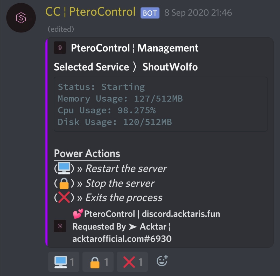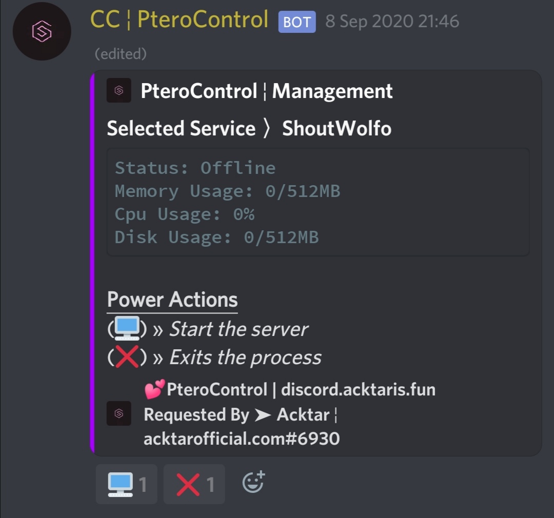 PteroControl is a bot designed to make administrating servers running on Pterodactyl more convenient by allowing admins to quickly run certain tasks directly from Discord: