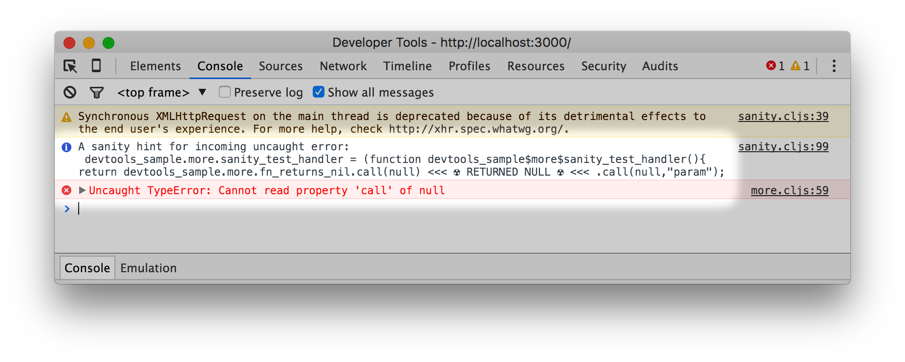 - Better presentation of ClojureScript values in DevTools (see the :formatters feature)