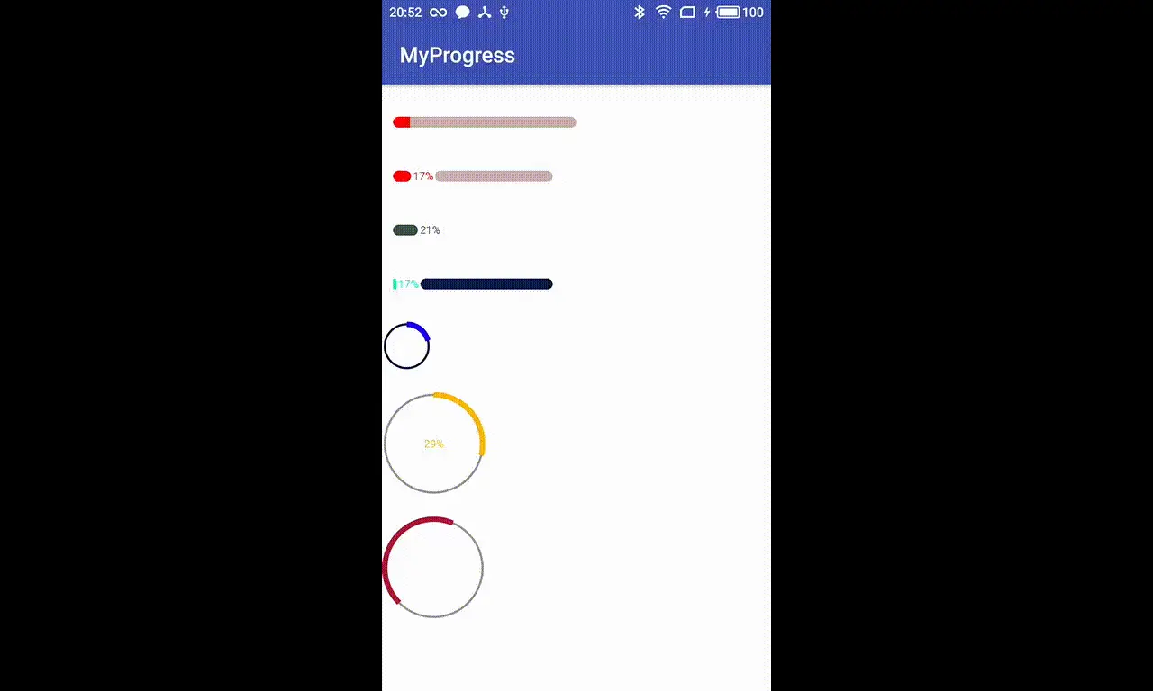 自定义水平带数字的进度条以及自定义圆形带数字的进度条 先上效果图 详见我的博客 1.Android自定义水平进度条 2.Android自定义圆形进度条 博客CSDN 我的简书 我的GitHub,喜欢的话给个star吧