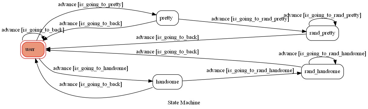 Every time user state is triggered to advance to another state, it will go_back to user state after the bot replies corresponding message.