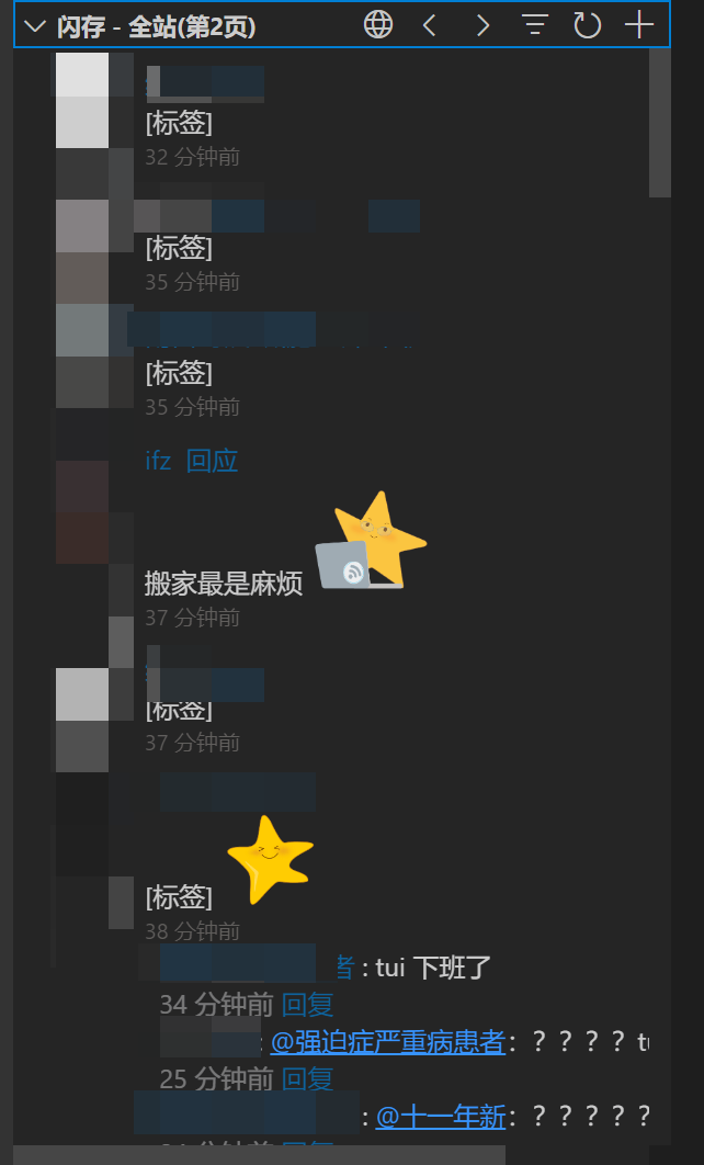 本扩展支持对闪存进行查看发布评论等操作,在侧边栏博客园视图中,展开 闪存 即可; 点击闪存标题栏中的加号图标可以发布新闪存。
