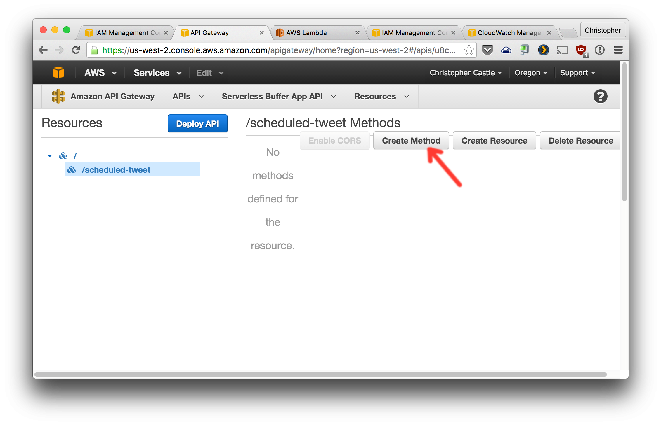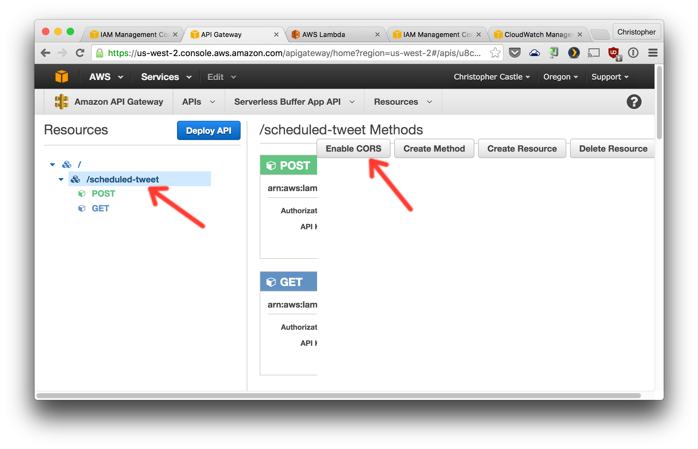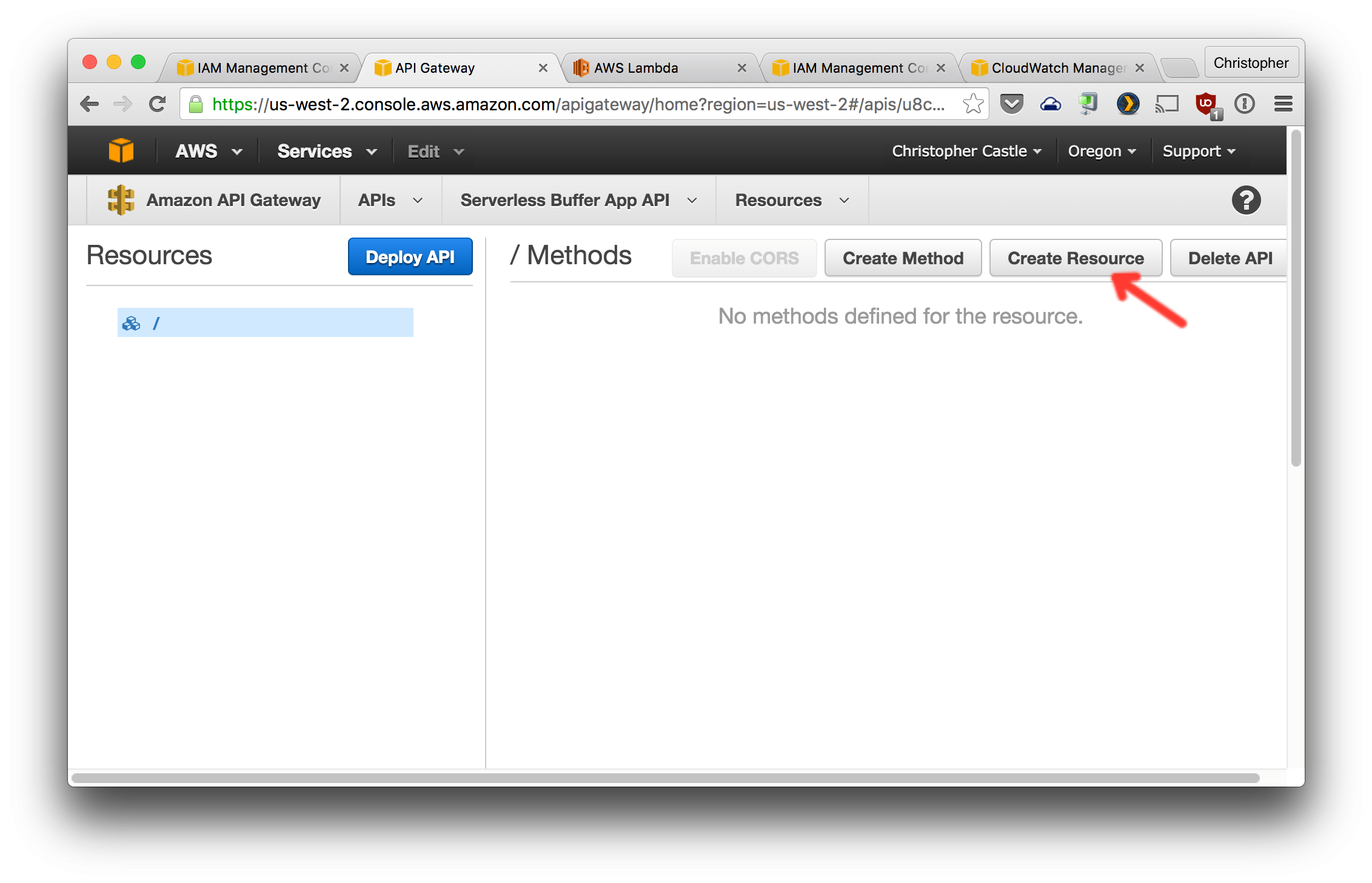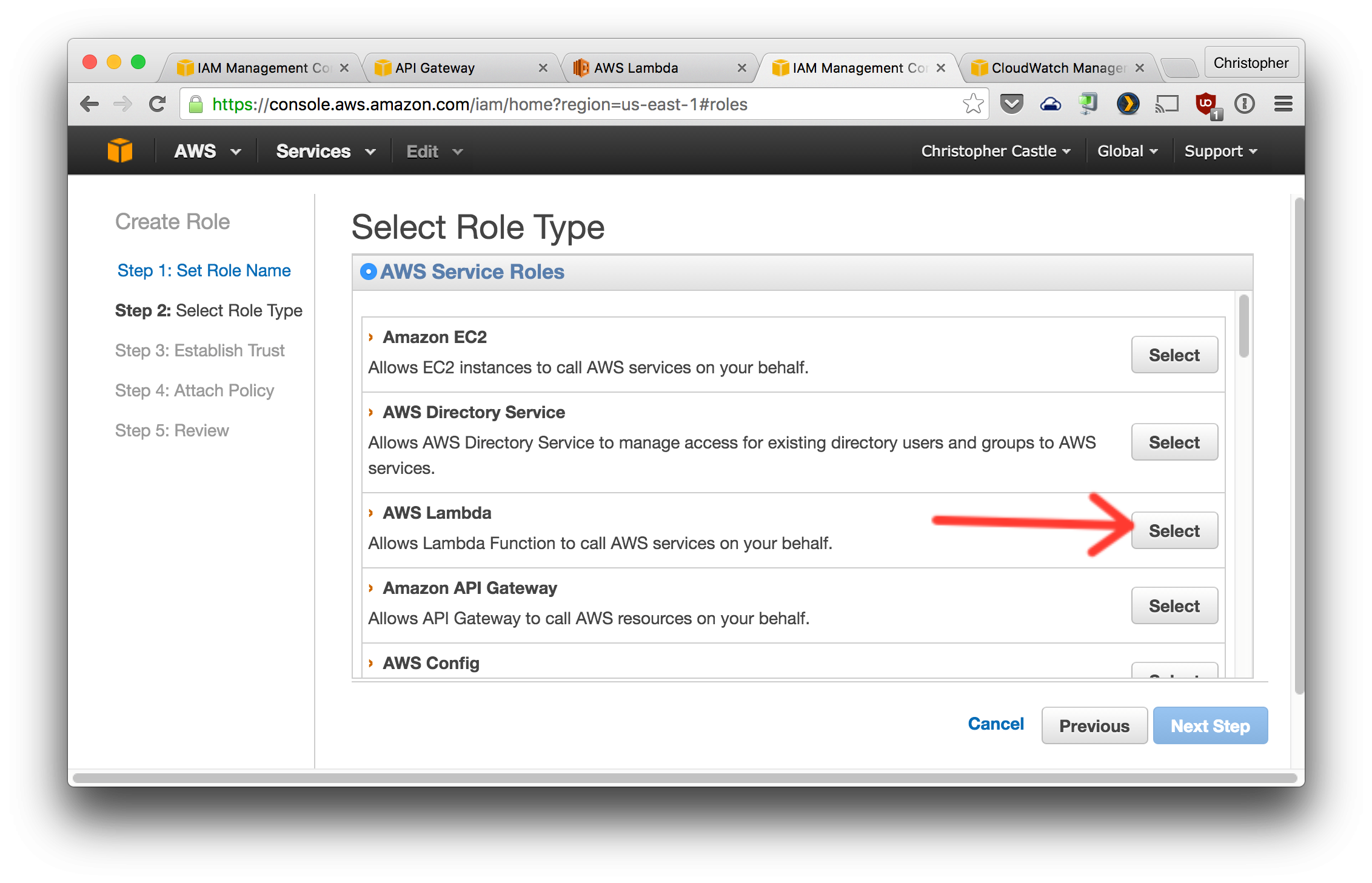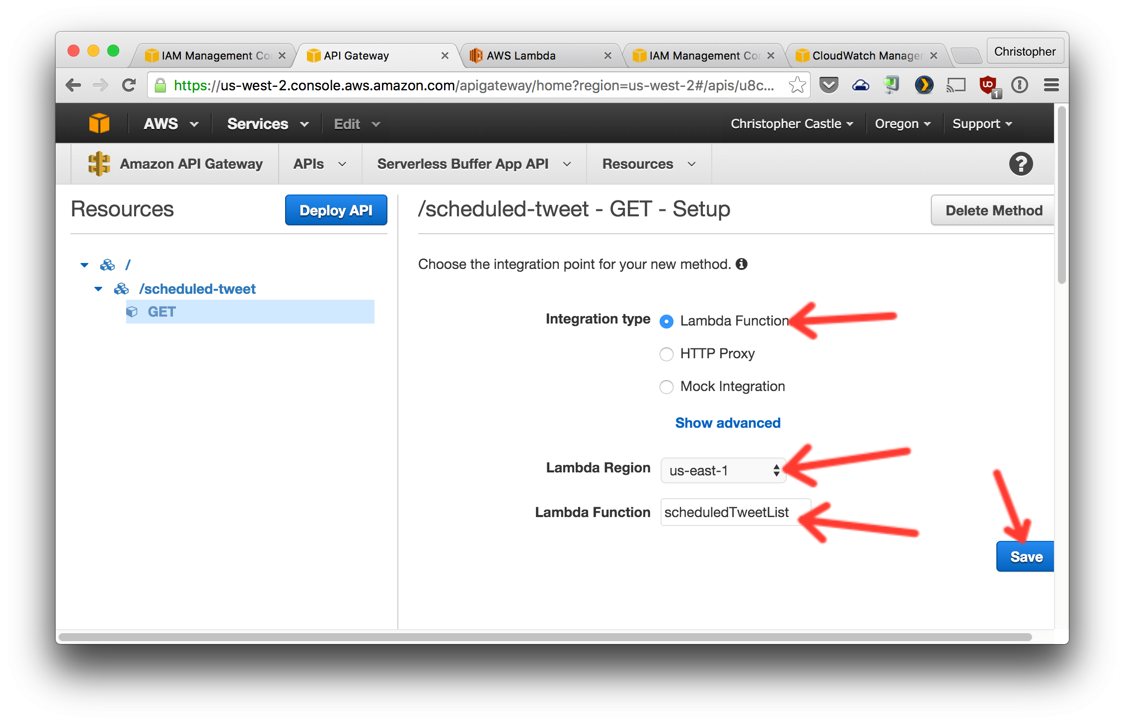 - Copy/paste the new role's ARN to the serverless-buffer-app-gui config file and finish creating the role. (TODO: update path of config file)