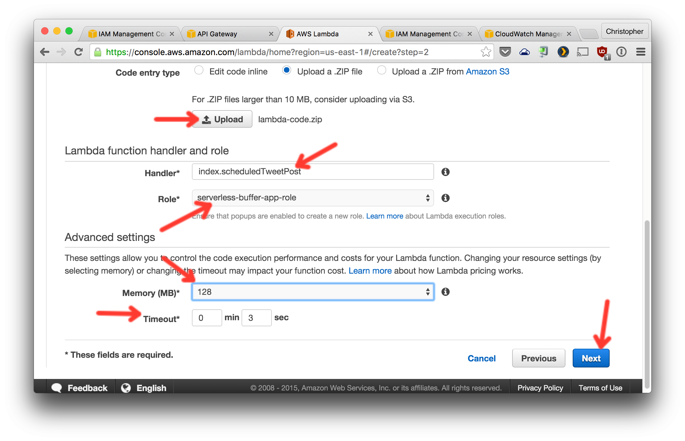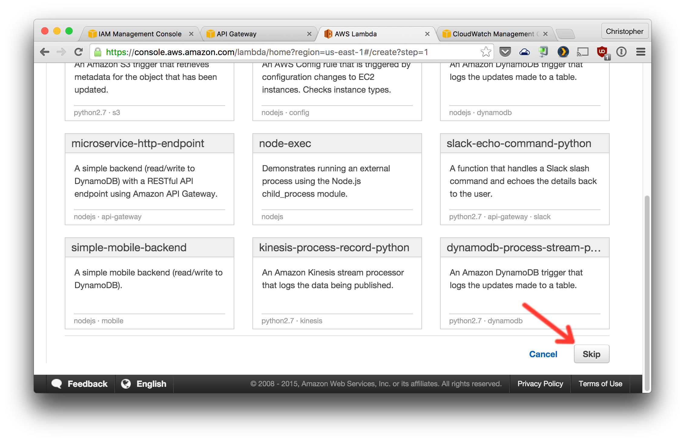 Give yourself an 1-2 hours to complete this setup. It is a long process -- too long, I think. That is the current reality in this world of stitching AWS services together like this. In January 2016, I am going to create a script that will do the bulk of this work. This will greatly speed up and simplify the setup process.