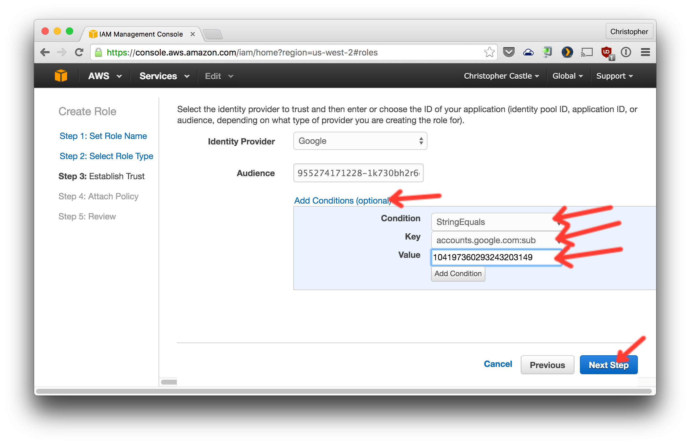 - Now create an AWS IAM role that will use Google as the authentication provider.