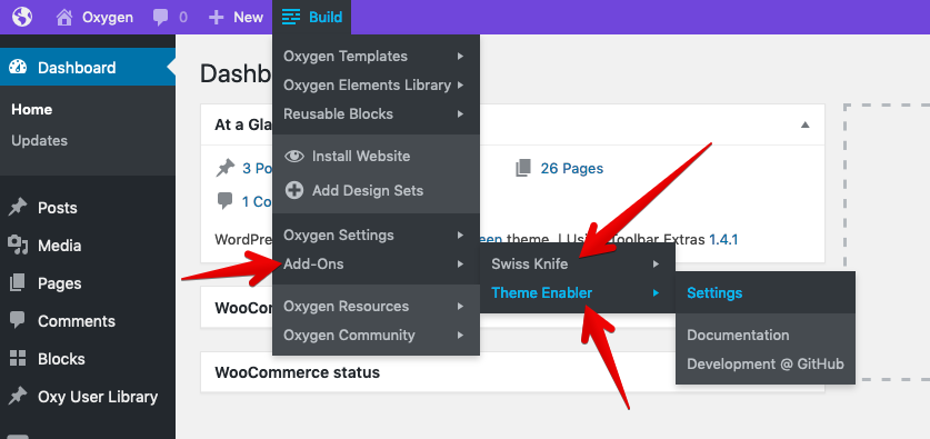 - Adds links to settings of Oxygen Add-On Plugins (only if these are active)