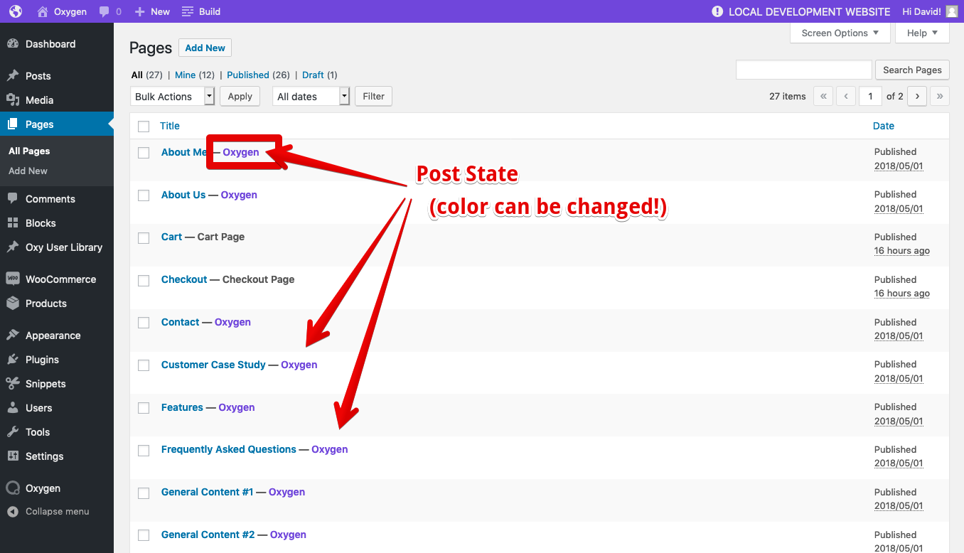 - Useful Post State "Oxygen" appended to all post type items edited with Oxygen - for example for Pages