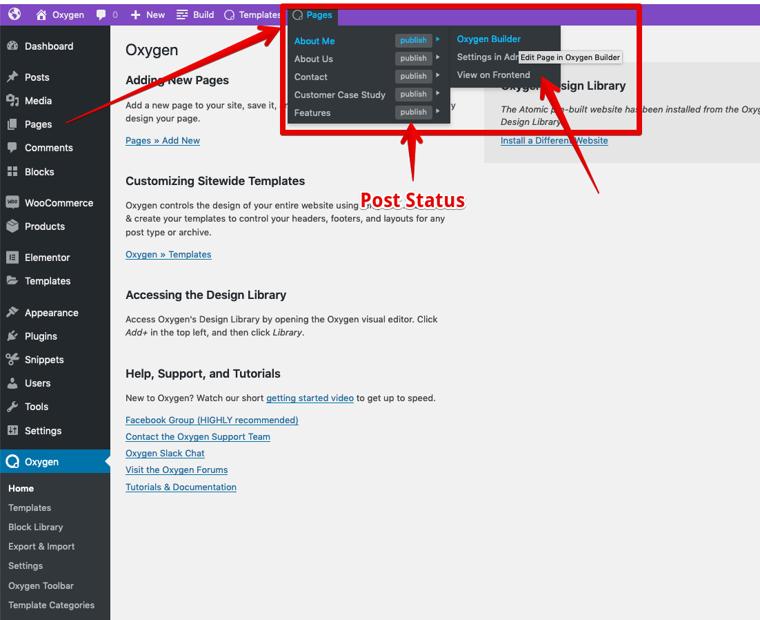 - More links for the "Back to WP" section in Oxygen Builder interface itself -- Oxygen Templates, WordPress Pages, WooCommerce Products, Oxygen User Elements Library