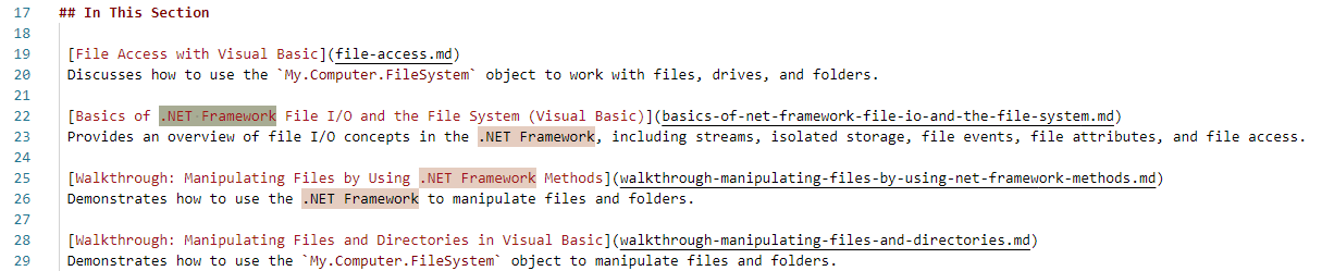update .NET Framework to .NET in visual-basic/developing-apps where applicable