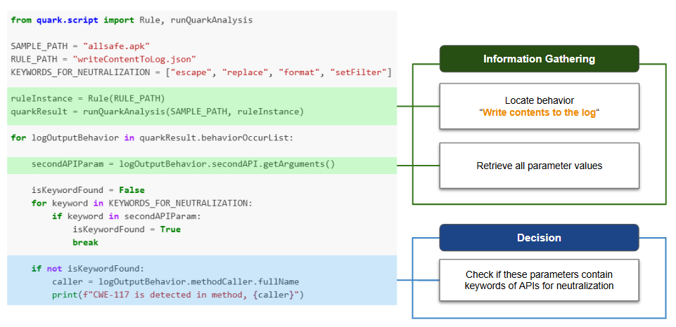 Let’s use the above APIs to show how the Quark script finds this vulnerability.