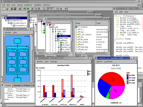 The tutorial part 1 and part 2 show a basic introduction to SpecC SLDL and the design methodology. The design methodology is implemented in System-on-Chip Environment (SCE), see the overview.