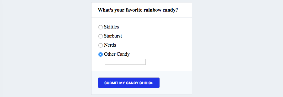 <poll :choices="['Skittles', 'Starburst', 'Nerds']" endpoint="https://example.com"></poll>