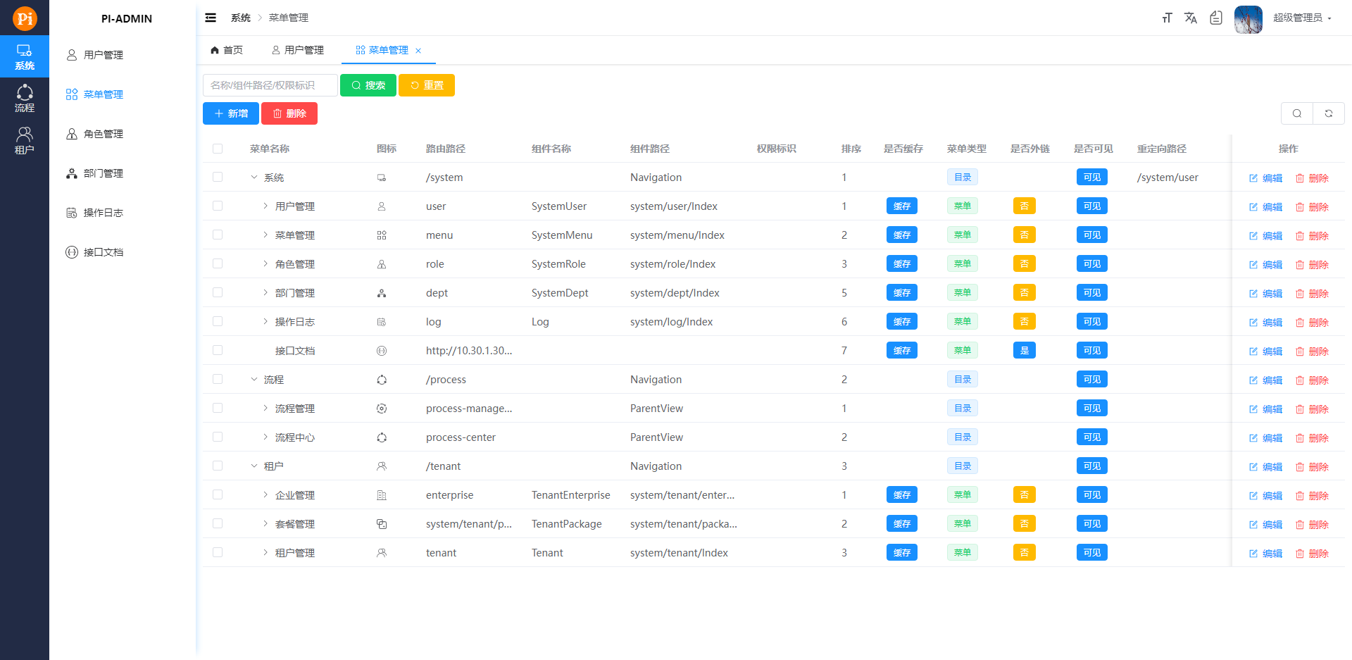 - 菜单管理 维护系统菜单。注意:只有平台用户才有修改权限