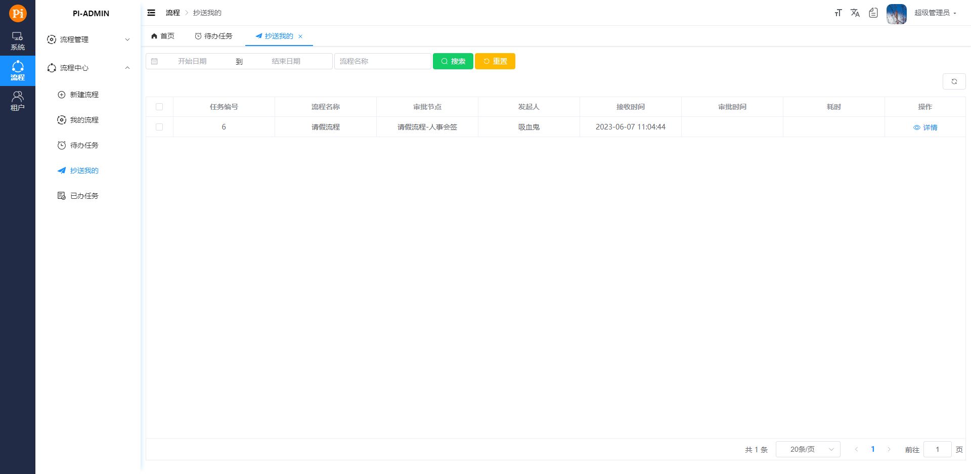 - 抄送我的 查看抄送给登录用户的流程